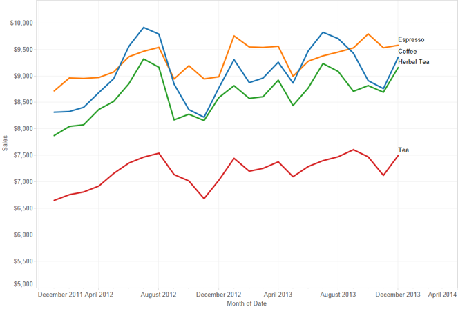 • In this graph, a legend is used to indicate product types.