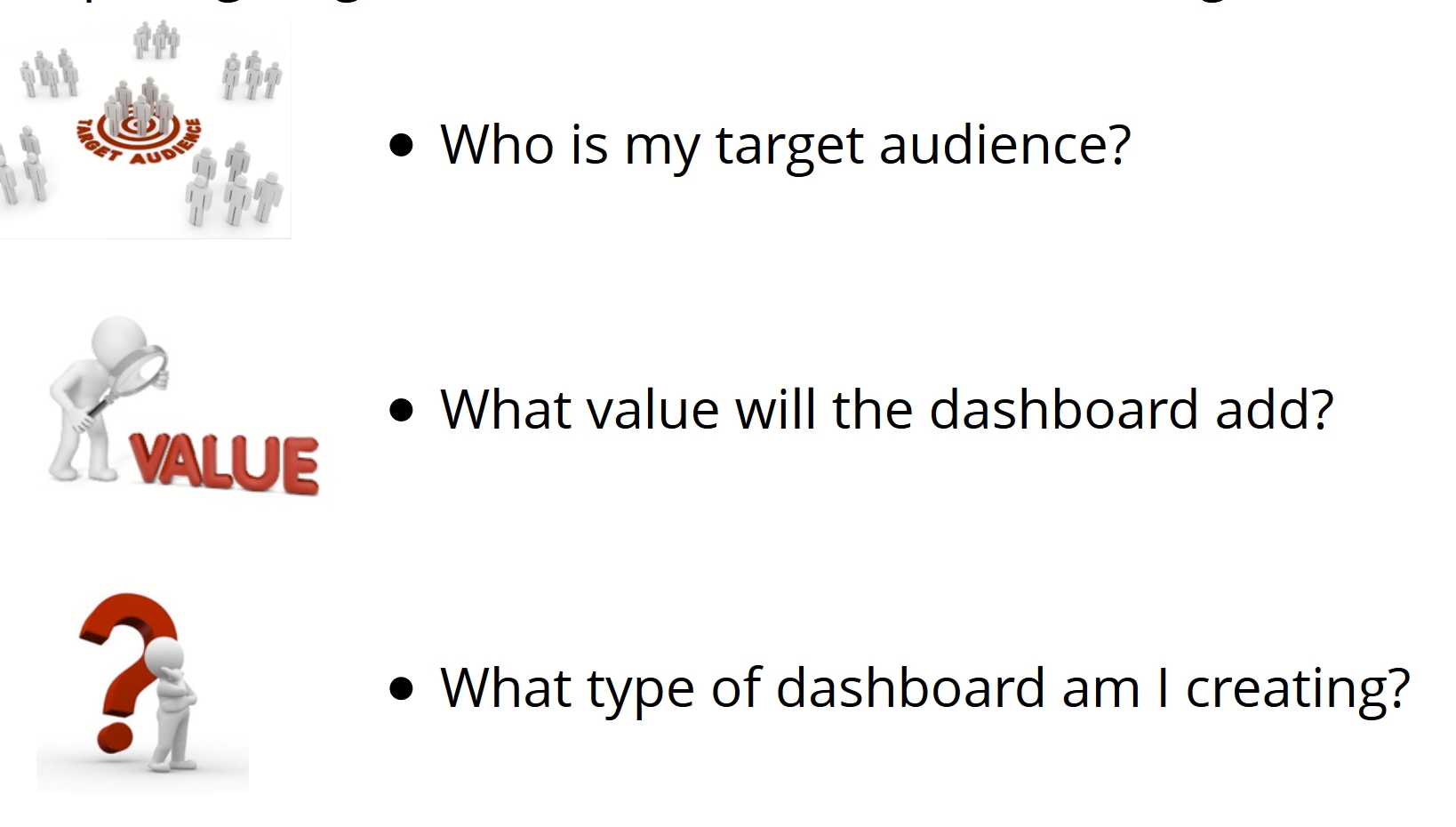 - Know what value your dashboard will add